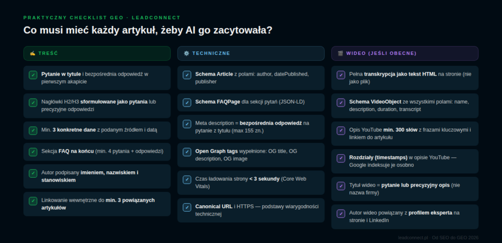 Praktyczny checklist GEO: co wdrożyć jako pierwsze?